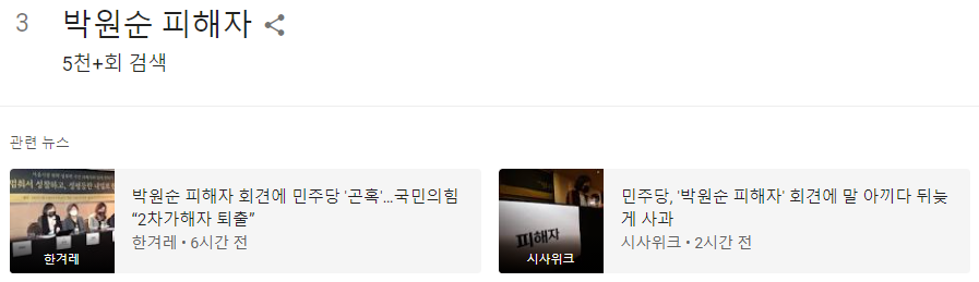 피해자 A씨는 이날 ‘서울시장 위력 성폭력 사건 피해자와 함께 말하는 사람들'이 진행한 기자회견에 나와 박 전 시장의 위력을 여전히 강하게 느낀다며 그의 지지자로 인한 2차 피해를 호소하며 “소모적 논쟁을 중단해주길 간절히 부탁한다”고 말했다.
