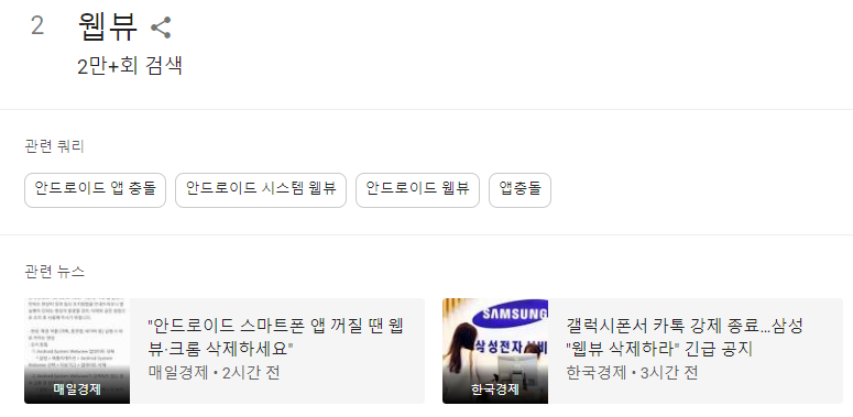 오류 원인으로 안드로이드 플랫폼에 내장된 '웹뷰(WebView)'라는 앱이 꼽힌다