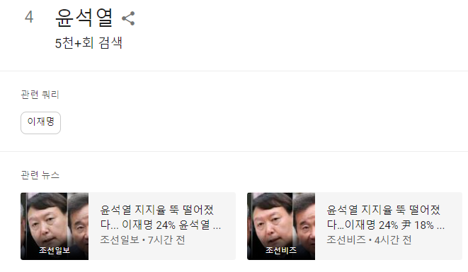 [출처]윤석열 지지율 뚝 떨어졌다…