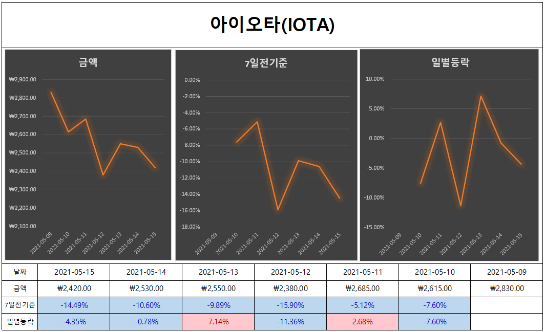 전일기준 하여 7일전 비교하면 -14.49%를 기록하고 있으며